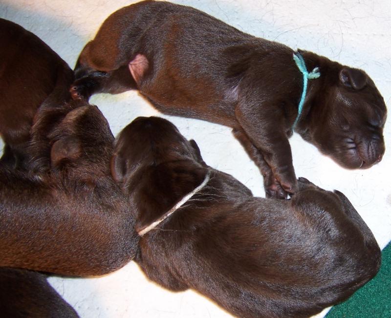Trouble and Axle are the proud parents of 4 beautiful little chocolate females, born